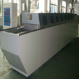 常規采用網帶連續輸送形式,輸送量大,結構簡單 ,適合于需要大量清洗產品,廣泛適用于磁性材料,陶瓷片、五金件,機械零部件,電池等產品的清洗作業。 可以布置高壓噴淋清洗,漂洗,超聲波清洗,壓縮空氣吹干,熱風烘干,上防銹油等工序。 工藝流程通常為:上料→噴淋→超聲波清洗→熱水噴淋→吹干→熱風烘干→下料。 設備特點: 1、具有運行平穩,操作簡單,維護方便,清洗效果好等特點,是目前清洗行業中比較先進的清洗設備。 2、 用不銹鋼鏈條連續輸送,變頻器調速,提高了工件的清洗量,大大降低了工人的勞動強度, 3、采用噴淋清洗與超聲波相結合,大大提高了清洗效果,且效果比工人清洗更佳。 4、PLC全程序控制可設計觸摸屏人機界面操作